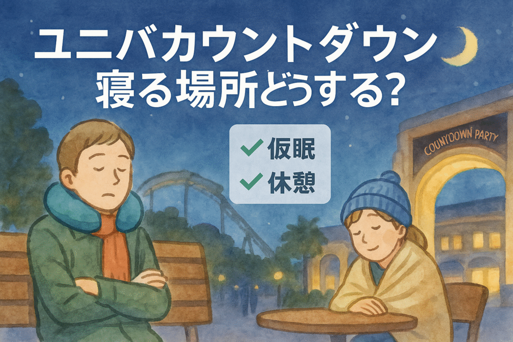 ユニバのカウントダウン、どこで寝たらいいの!? 結論から言うと、パーク内では仮眠できません。 夜通しイベントが続く中でしっかり休むには、園外での仮眠・休憩場所を事前に確保しておくことが大切です。 この記事では、実際に多くの人が利用している寝... -